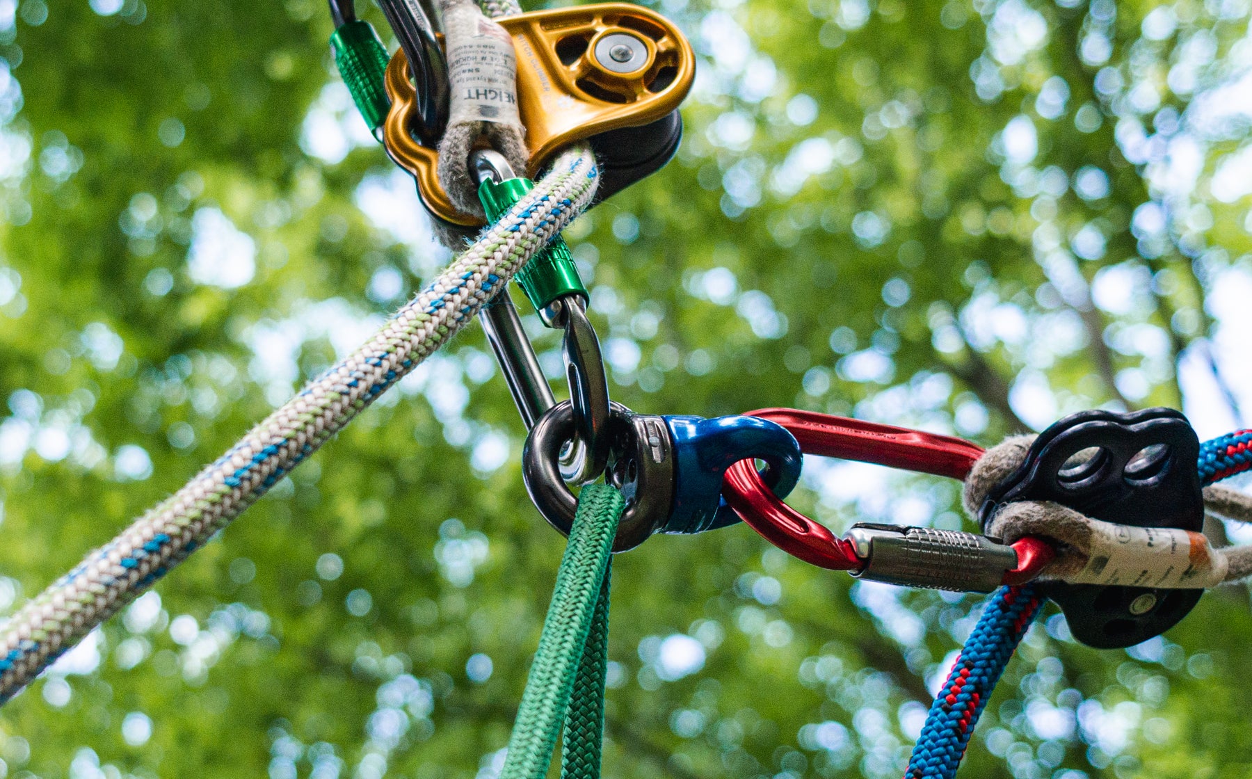 Swivels are used in a variety of applications. When a swivel is adapted to the bridge of a harness, it can help prevent rope crossover. It will not remedy crossover as you move around the canopy. The other major benefit is that the swivel keeps your climbing system correctly oriented at all times, which is a great deal of help when positioning.