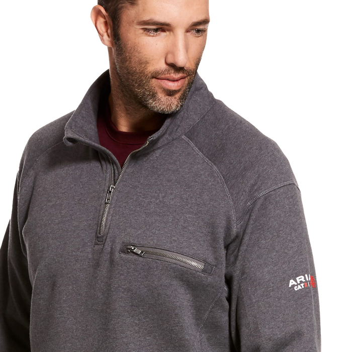 The Ariat FR Rev 1/4 Zip Top is designed for hazardous work environments and provides both warmth and protection. The flame resistant material ensures safety while the underarm gussets and ergonomic seam design allow for ease of movement. Stay comfortable and focused on the job in this 1/4-zip mock neck style.