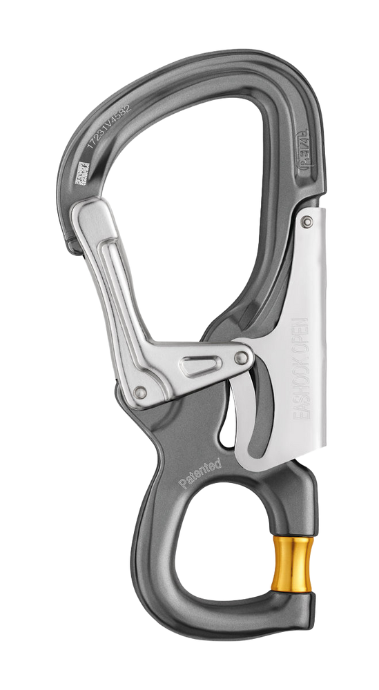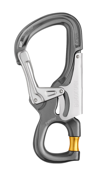 The EASHOOK OPEN connector is designed for use at the ends of a double lanyard or work positioning lanyard. The gated connection point allows for direct attachment of the connector to the lanyards If the lanyard is damaged, the connector can thus be reused The excellent grip and automatic locking system facilitate handling when passing intermediate anchors.