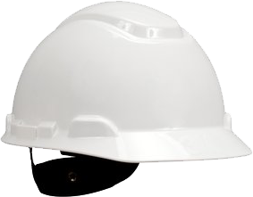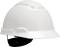 Protective hard hat with comfortable 4-point ratchet suspension and standard brow pad. Slots for ear muffs. UVicator sensor shows when it's time to replace hard hat due to UV exposure.