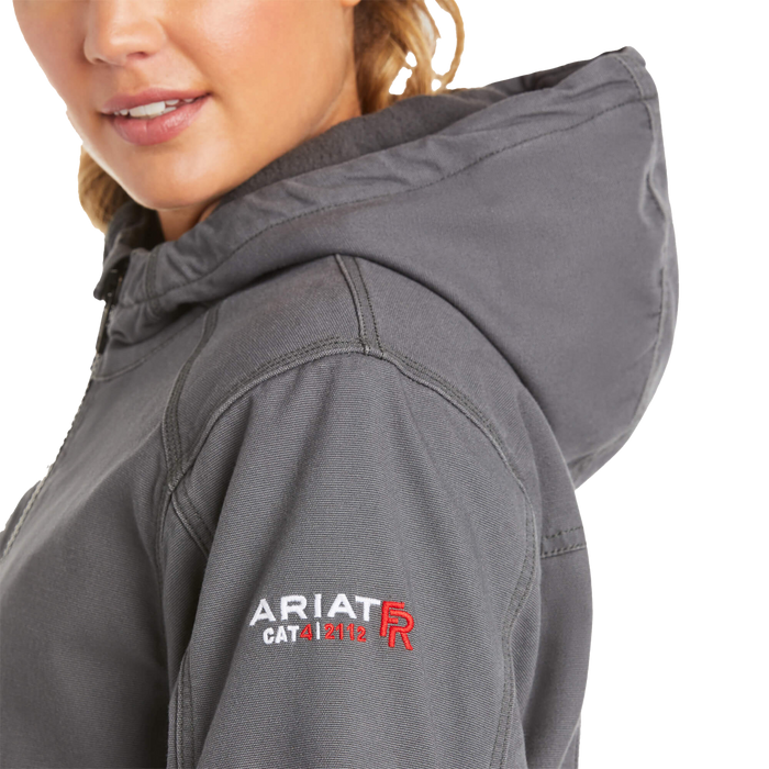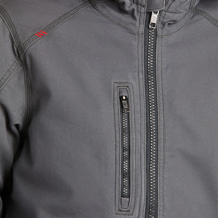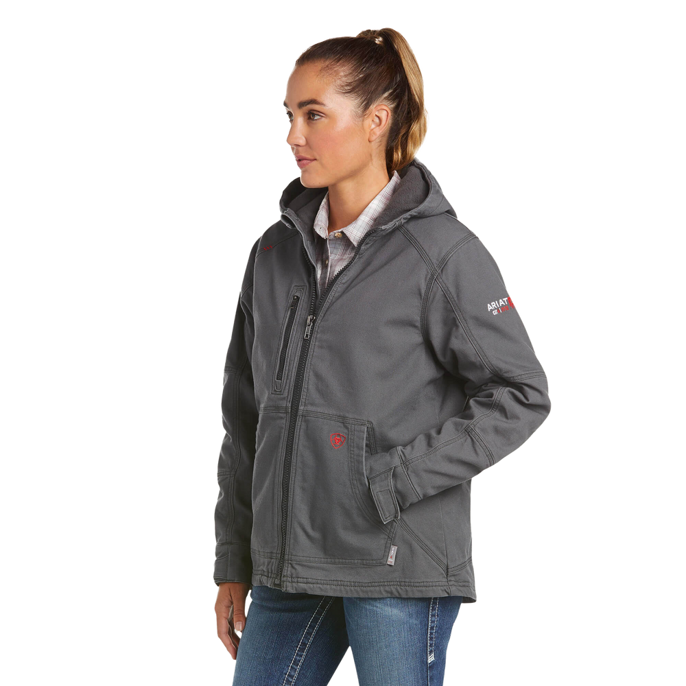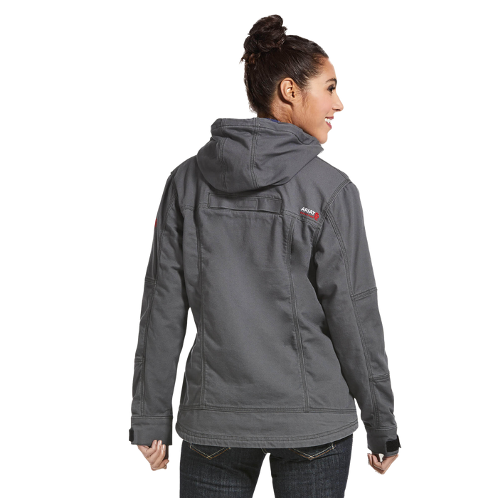 Introducing the Ariat FR DuraLight Stretch Canvas Jacket. Stay warm, comfortable and protected in this smart and innovative jacket. The polar fleece lining provides warmth, while the DuraLight stretch canvas fabric offers 3x abrasion resistance and increased range of motion. It even includes a lanyard access sleeve for harness use.