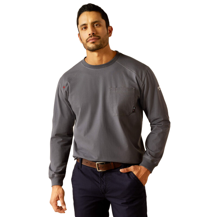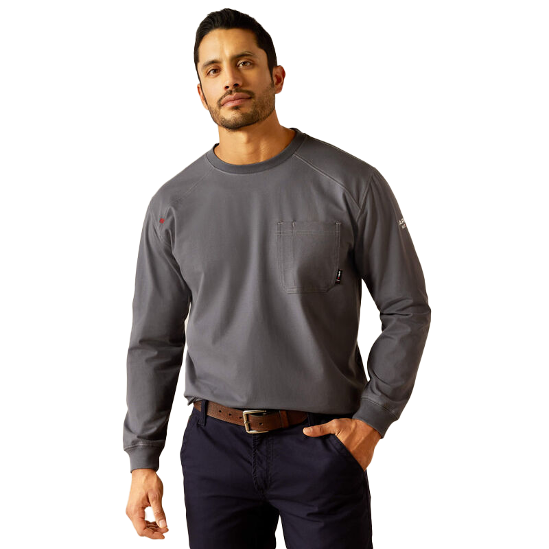 Stay protected, comfortable, and stylish at work with the Ariat FR Pima T-Shirt. Made with flame-resistant U.S.-grown Supima® cotton blend, this everyday staple offers just the right amount of stretch and forward-rolled shoulder seams for unrestricted movement. Expertly crafted to provide the best in protection and durability.