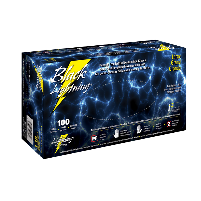 Protect your hands with the Black Lightning® Industrial Gloves from Atlantic Safety Products. With a durable 6 mil thickness, these gloves provide excellent barrier protection without sacrificing comfort. The unique formulation reduces perspiration, while super strength and a fully textured grip prevent tearing. Tested against fentanyl and approved for medical use, these gloves are essential for any work environment.