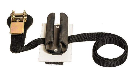 This handle holder is perfect for the pole of your hydraulic pruner or hydraulic chainsaw and is easily secured to the boom by means of a strap and ratchet mechanism. (Do not overtighten the ratchet!) Shaped to fit a square boom.