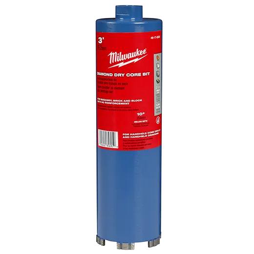 Introducing MILWAUKEE® Diamond Dry Core Bits, the highest quality drill bits on the market. Crafted with precision and only the best diamonds, these bits are perfect for drilling brick and block without reinforcement. Featuring large slots for cooling and easy core extraction, and a thinner wall for faster drilling. Available in sizes 1" – 6" and 10" in length with a 5/8"–11 thread. Experience the ultimate in drilling efficiency with MILWAUKEE® Diamond Dry Core Bits.