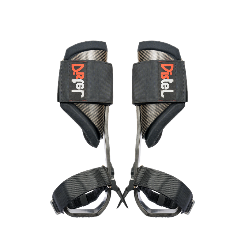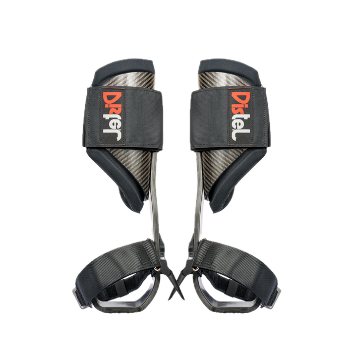The Distel Carbon Fiber 3.1 climbing spur sets a new standard in lightweight performance and ergonomic precision for professional tree climbers. Now with a fresh design, it features a durable carbon-polycarbonate matrix, unmatched adjustability, and a Vibram base for rugged grip—all in one ultra-light, ultra-comfortable package.