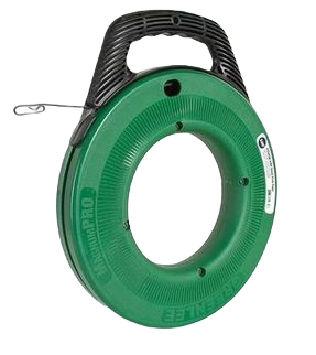 Greenlee Magnum Pro Steel Fish Tape is made with oil-tempered spring steel for superior fishing performance and a dirt-free tape finish for cleaner hands. It features an advanced comfort handle grip for reduced fatigue, improved low profile tip and Fish Eye for easy fishing, and a viewing port for visibility. Additionally, the rugged case design and flared Grip Ridges provide enhanced drop impact capability and no-slip handling.