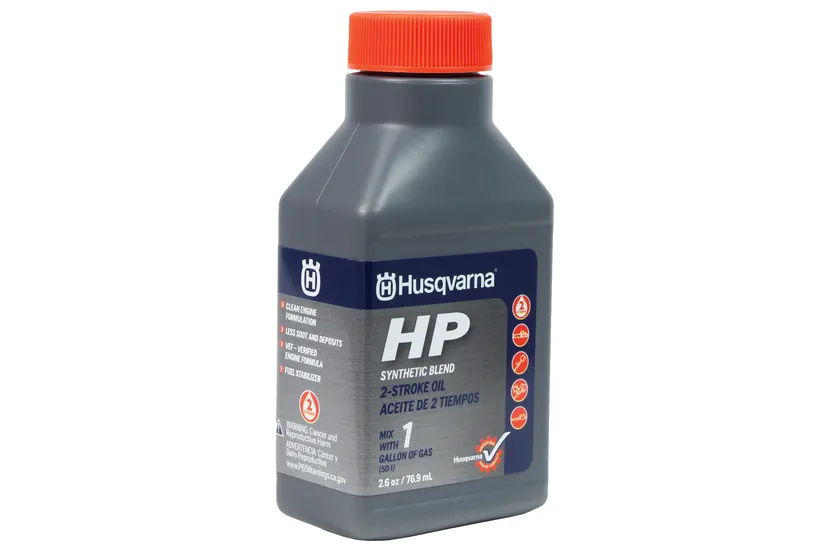 Husqvarna High Performance 2 stroke oil ensures optimal lubricity, lower running temperatures, less deposits. Also contains fuel stabilizer to help reduce the chance of spoiled gas. Sold in singles, 6 packs, or 24 pack case.