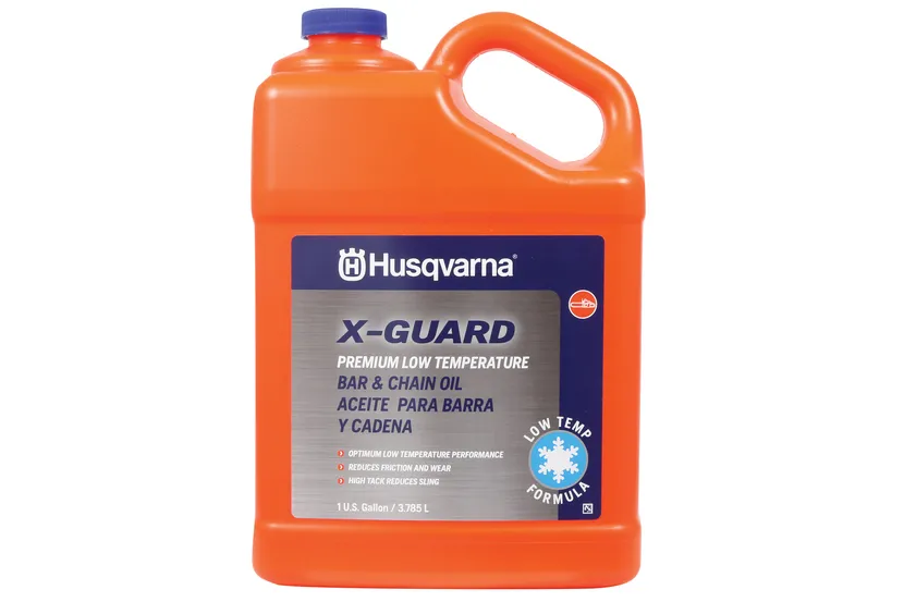 Husqvarna's low temp bar & chain oil reduces wear and tear on cutting bars and chains extending the overall runtime and life of your investments. Good for use down to negative 15 degrees F. Sold by the gallon or in a case of 4 gallons