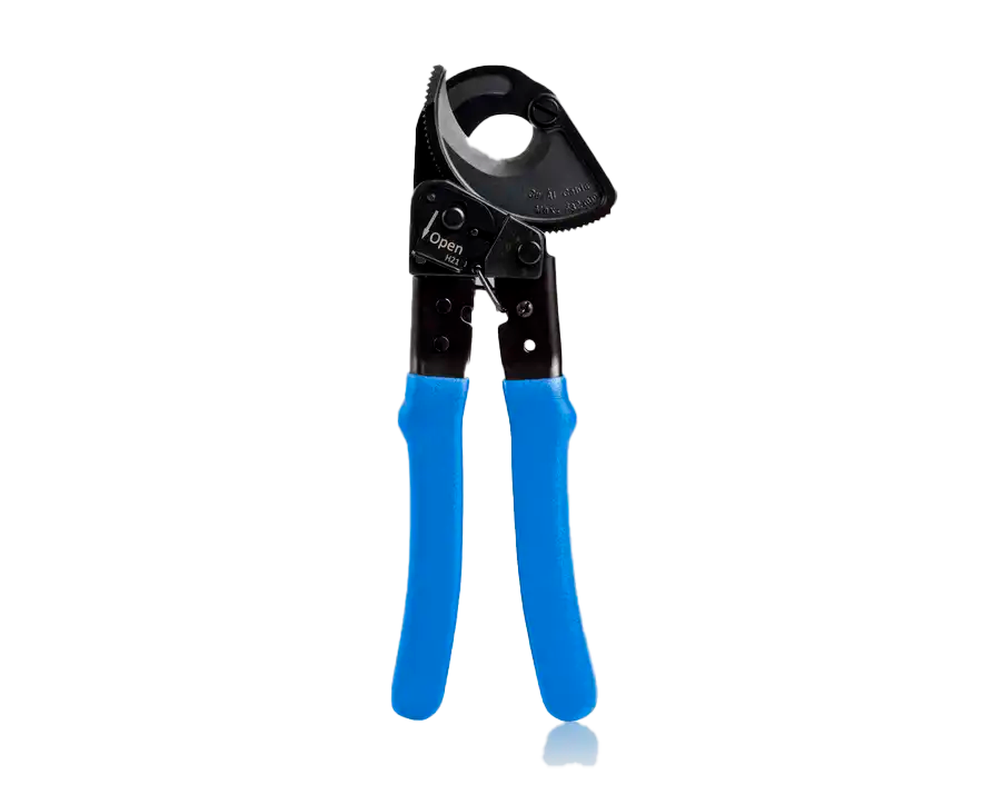 The Jonard Tools RC-500 Ratcheting Cable Cutter is engineered for precise cutting of copper and aluminum power cables up to 500 MCM (240 mm²). Constructed from heat-treated carbon steel with induction-hardened edges, it ensures long-lasting strength and sharpness. Its ergonomic, cushioned rubber handles and spring-loaded mechanism provide comfort and efficiency, allowing quick, controlled cuts. Designed specifically for multi-conductor cables, it is not suitable for ACSR or steel cables. This tool offers professionals reliable performance and ease of use in demanding electrical applications.