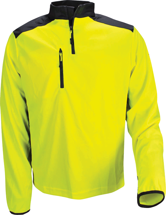 This bright yellow long sleeve shirt is a perfect professional work shirt! Made of CoolMax material, it is breathable and stretchy to allow you to move comfortably throughout the day. With it's hi-visibility color and UV protection (UPF 35), you are sure to remain noticeable and protected from the sun. Featuring a chest pocket, 1/4 zip front, and a slightly longer back.